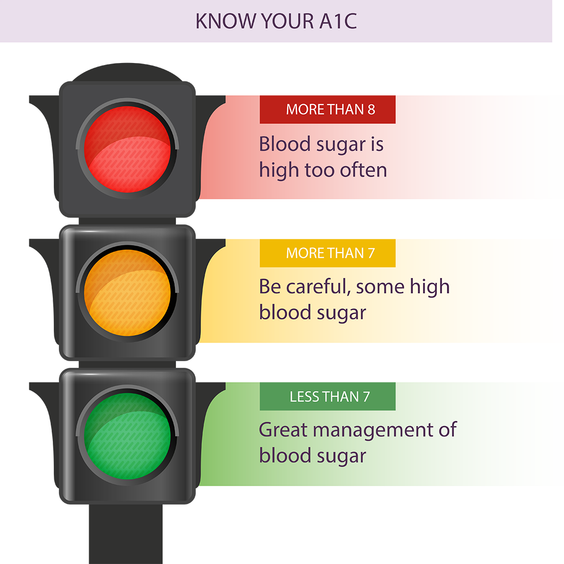 When you have diabetes, the hemoglobin A1C (A1C) test is like a speedometer. Each 1% increase of the A1C value above the recommended level is like driving too fast. You're less in control of your car and more at risk. Keeping your A1C within recommended levels makes you safer with your diabetes.