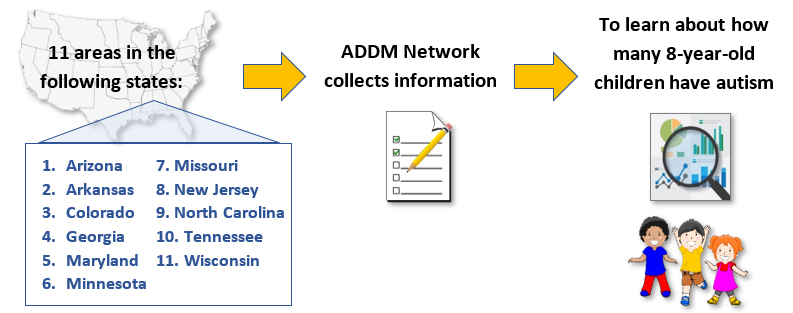 The information for these studies came from CDC’s Autism and Developmental Disabilities Monitoring Network, or “ADDM.”- ADDM is a group of programs that keeps track of the number of children with autism in different areas of the United States.