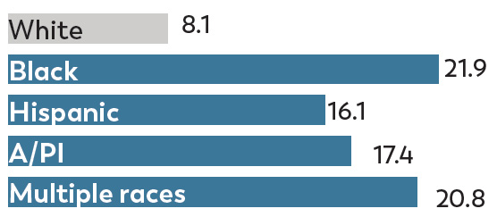 Among 8-year-olds, Black children were 1.5 times more likely to be identified with ASD as White children.