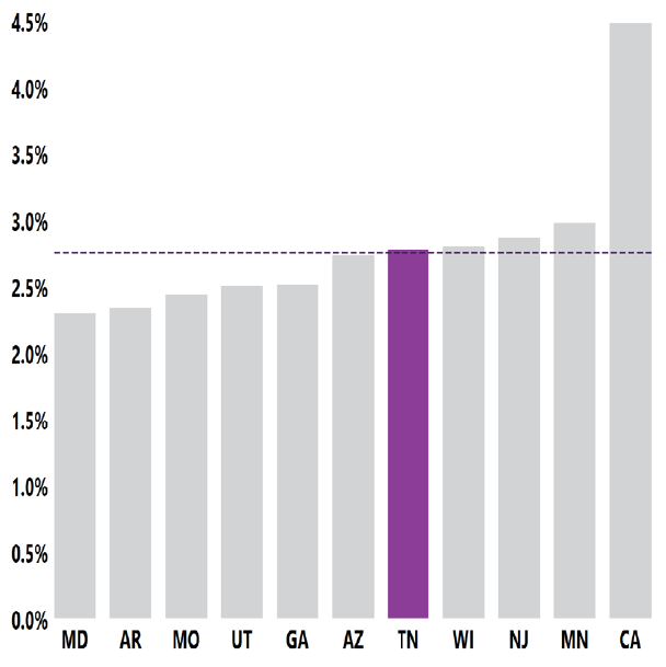 Área de seguimiento: condados de Bedford, Cheatham, Davidson, Dickson, Marshall, Maury, Montgomery, Rutherford, Robertson, Williamson y Wilson