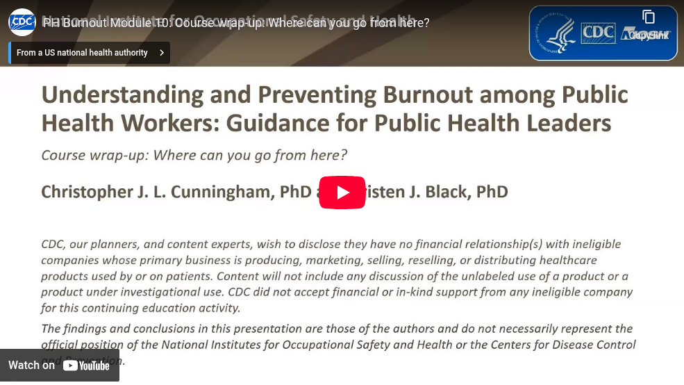 - Describe the importance of taking a “whole person” or Total Worker Health® approach when intervening to protect public health workers’ health and well-being.