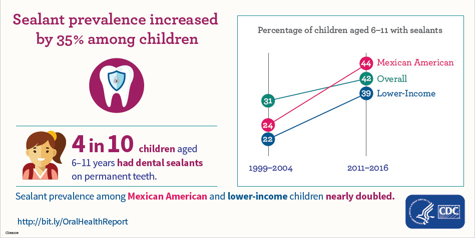 Sealant prevalence among Mexican-American and lower-income children nearly doubled.