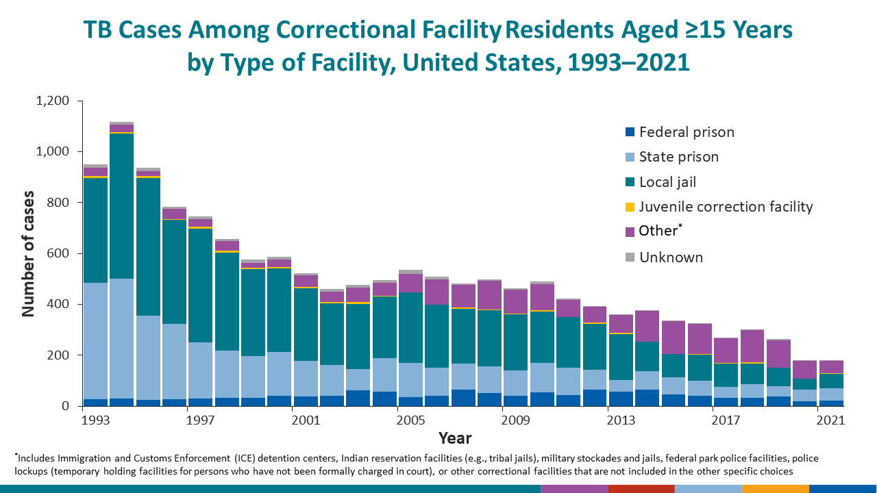 In 2021, 2.4% of persons 15 years of age or older diagnosed with TB disease were current residents of correctional facilities at the time of diagnosis (TB in Correctional Facilities: Reporting Areas, 2021).